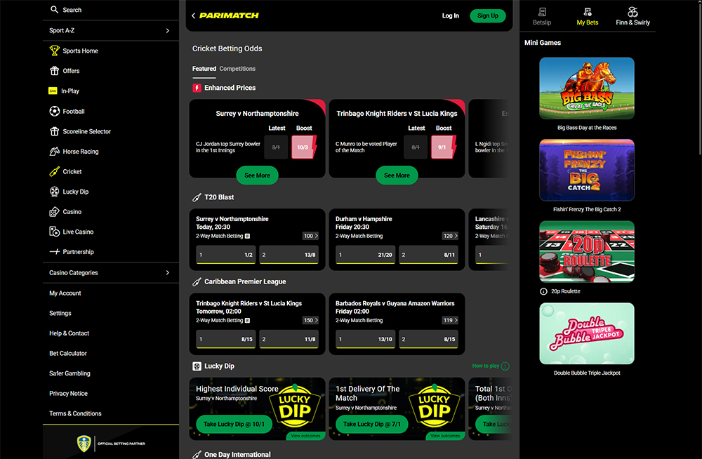 When you sign up, you’ll also have access to the casino. Effortlessly switch between the two on the app or website, and you can enjoy over 2,000 games. Parimatch is a top casino site offering popular games in the UK like Big Bass Bonanza and 20p Roulette. Also, you can play dozens of live games streamed from casinos, such as blackjack, roulette, game shows, and baccarat.