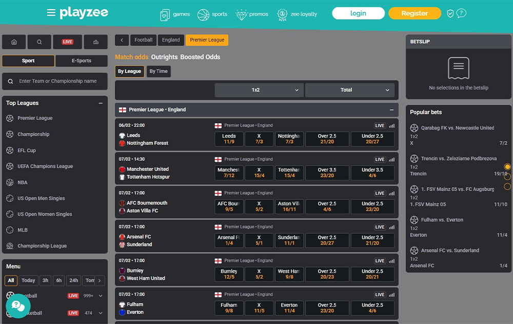 Similar to that of the UK’s top football betting sites, Playzee offers all the top leagues and competitions. Starting with the Premier League, you’ll find over 250 markets to bet on, including correct score, draw no bet, and handicaps. Also, you can wager before events or in-play on top tournaments like the World Cup, FA Cup, and UEFA Champions League.